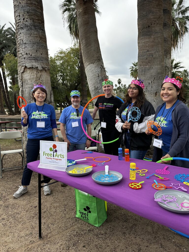 To aid these efforts, this year, the Art Heals Arizona Family Program and Young Adult Empowerment Program (YAEP) were honored to provide resilience-building art activities at Arizonans for Children Foster Festival. For this annual event, the Enchanted Island Amusement Park partners with Arizonans for Children to bring a one-of-a-kind experience to foster families. The festival has been running for 14 years and typically draws thousands in attendance.
