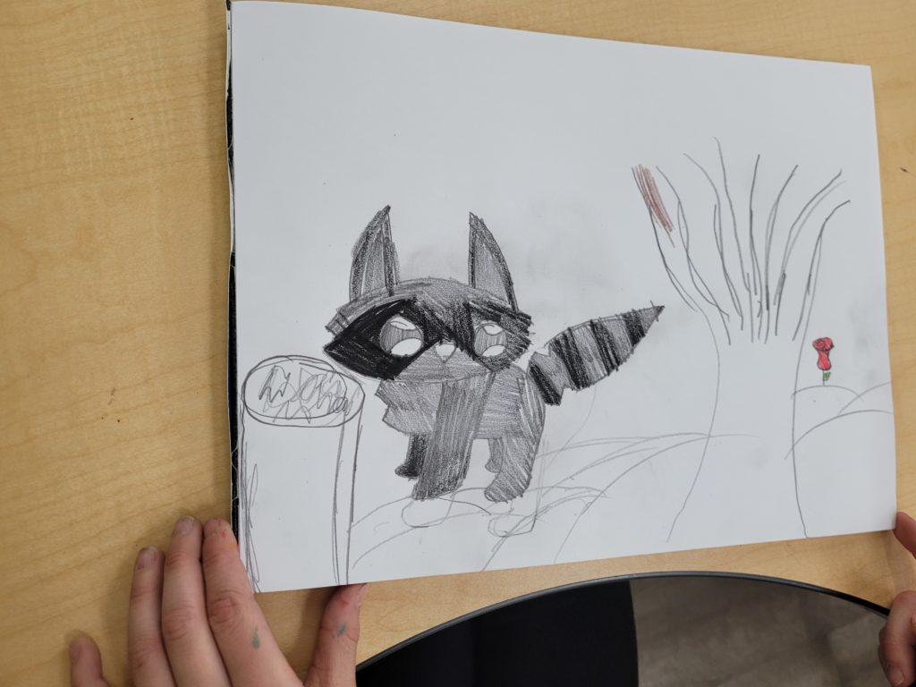 After sketching was complete, teaching artist Isaac compiled images from all of the children’s sketchbooks and transferred them into a final mural design. Through a paint-by-numbers system, each child helped paint sections of the wall. Art Heals Arizona volunteer mentors Mary Greer and Andrea Privett supported this project and built connections with children throughout the process.